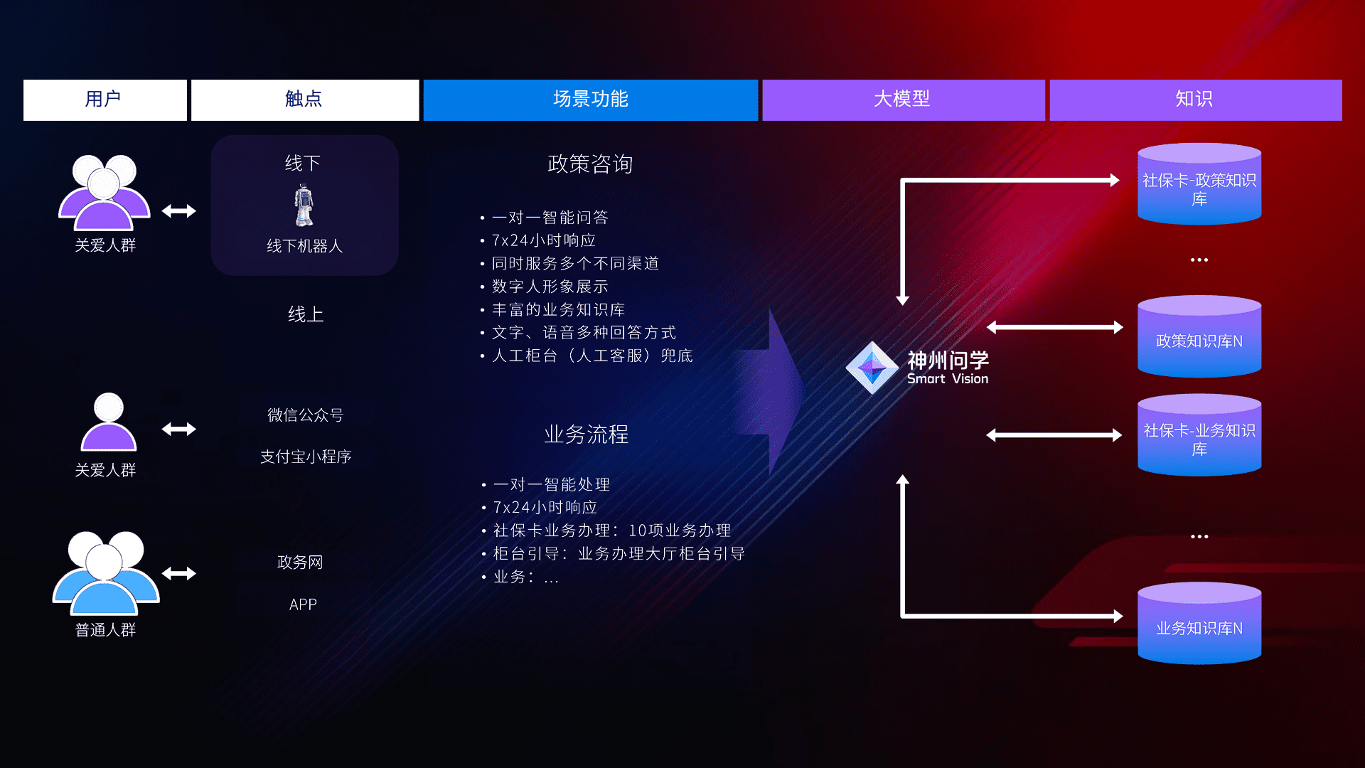 • 线上线下全覆盖:线上提供微信公众号、、支付宝小程序、、政务网、、、、app多种渠道,,,,与线下机器人形成完整服务体系。。。。